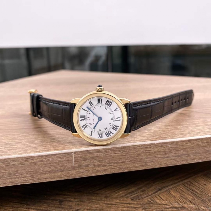 卡地亚RONDE DE CARTIER系列18K黄金精钢石英女表