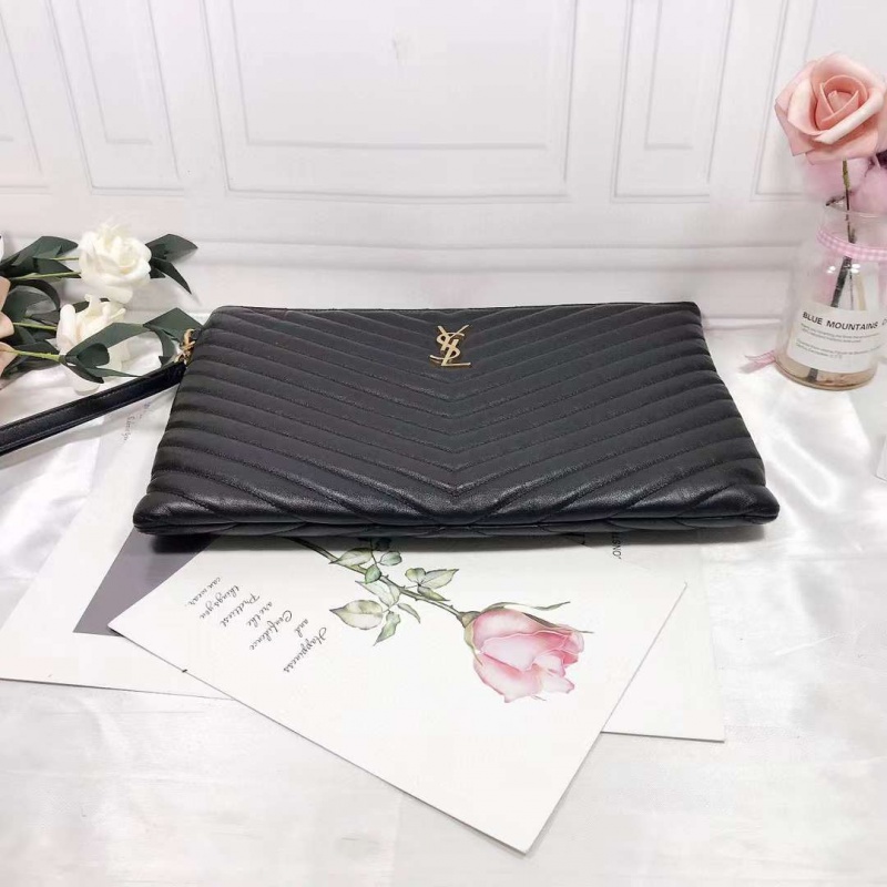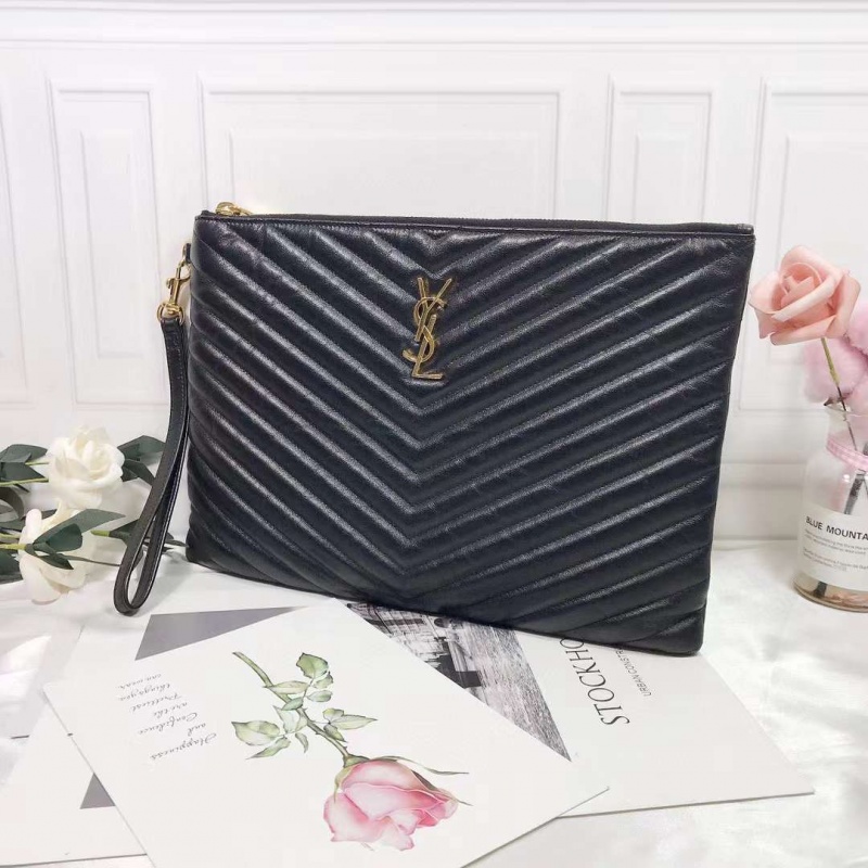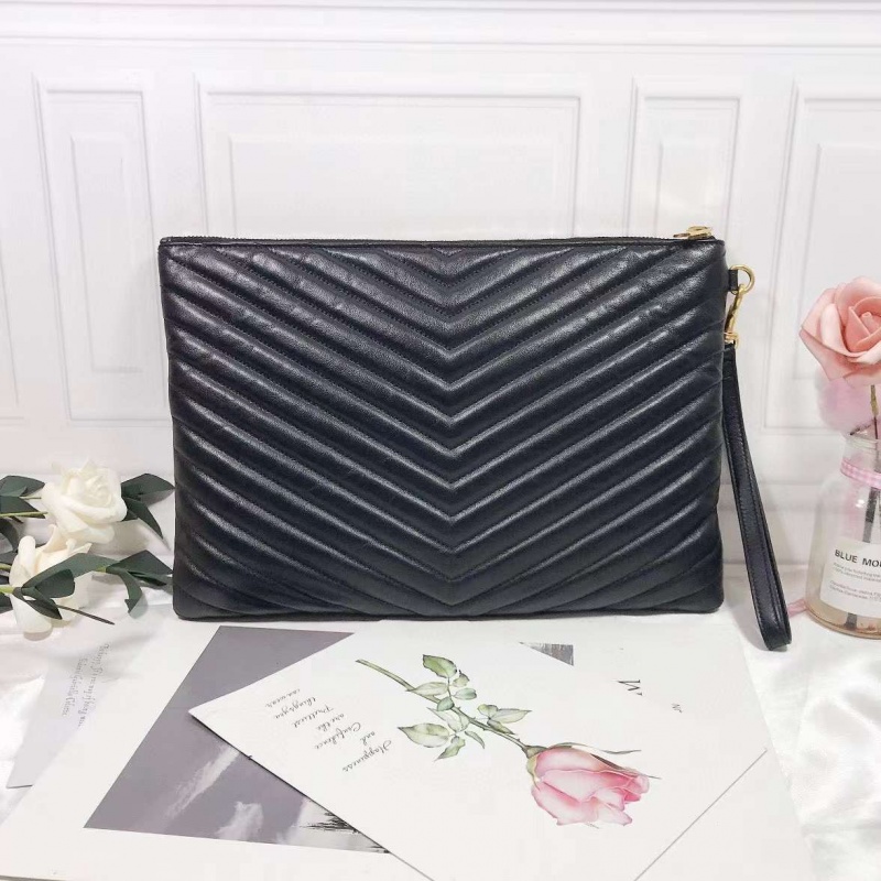 YSL圣罗兰黑色V纹拉链手包