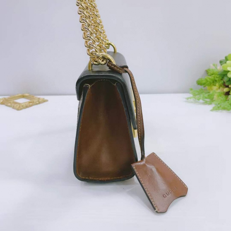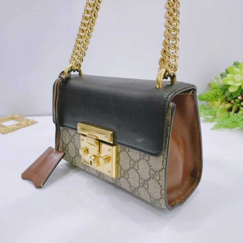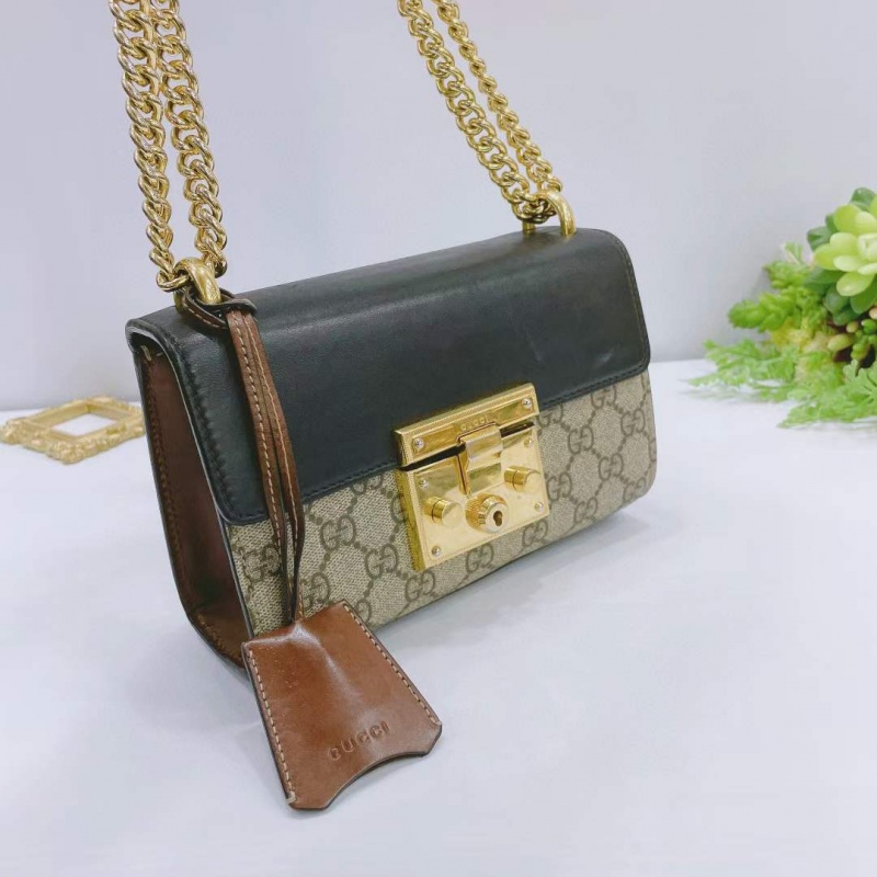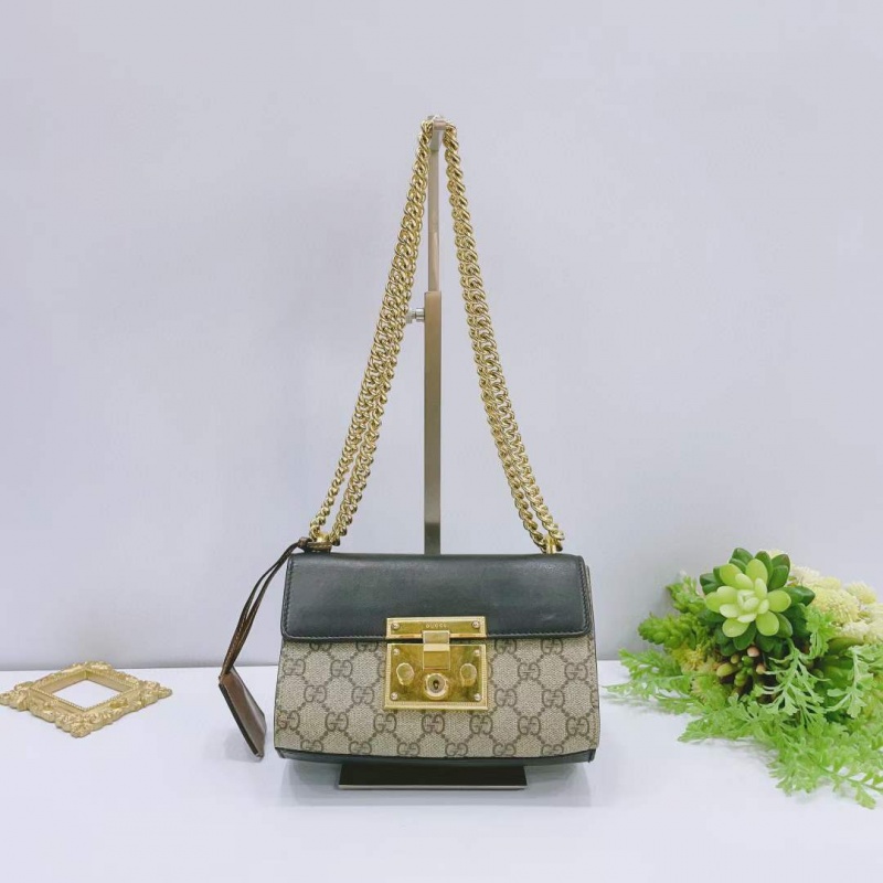 Gucci古奇Padlock系列黑配皮链条肩背包