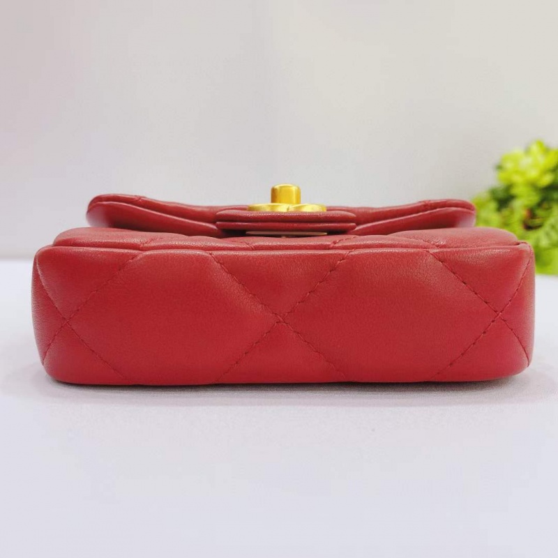 Chanel香奈儿红色链条口盖卡包链条肩背包